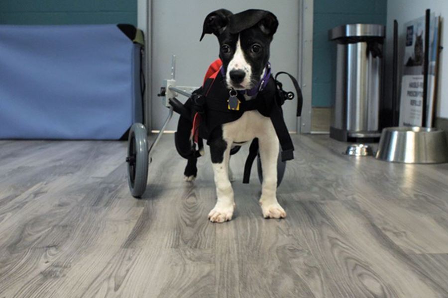 This 4-month old puppy with paralyzed legs is learning how to walk