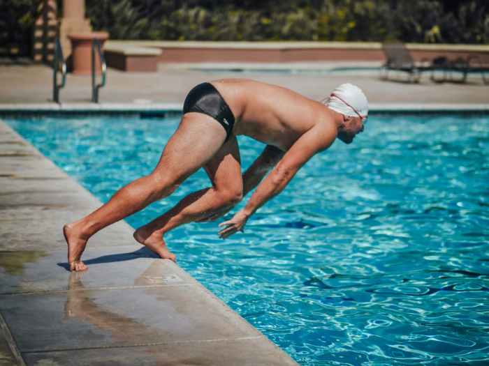 It was first introduced and practiced as a way of improving the start at swimming matches, according to “The Swimming Instructor: A Treatise on the Arts of Swimming and Diving.”